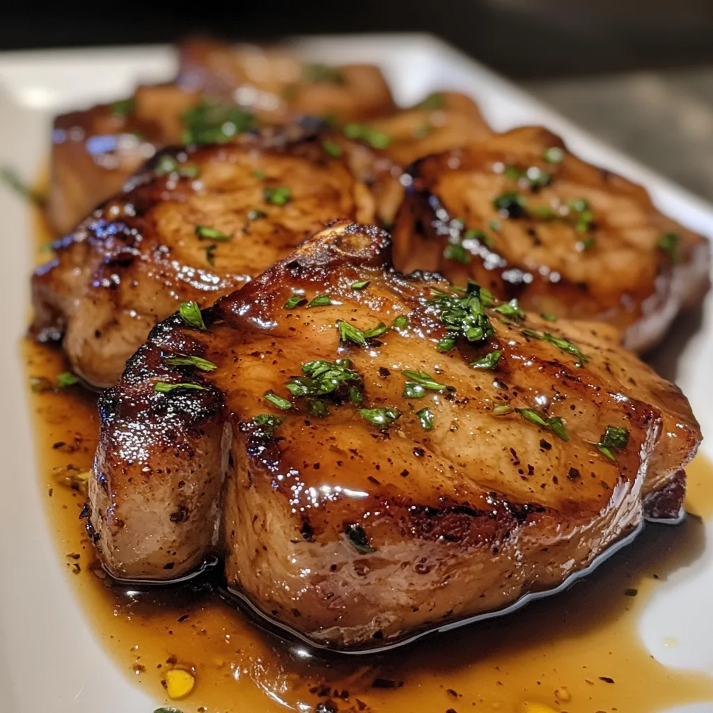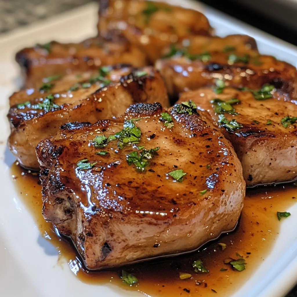Delicious pork chops glazed with a sweet and tangy apple cider sauce, perfect for a flavorful dinner.