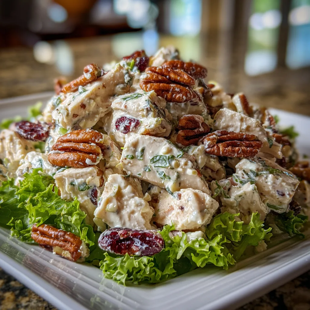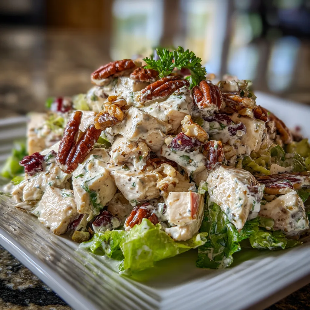 A delicious and refreshing salad combining tender chicken, crisp apples, and crunchy pecans, perfect for a light meal or a side dish.