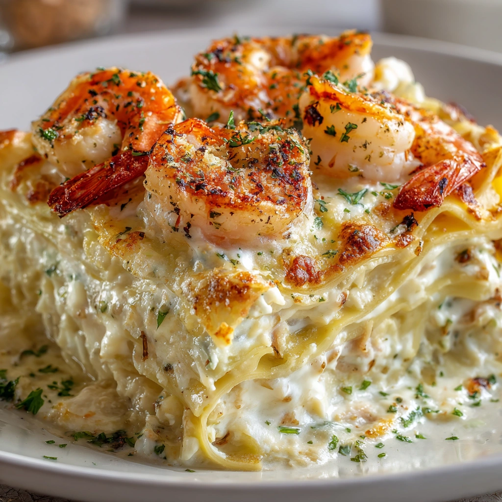 Sensory-Rich Introduction with Immediate Craving Imagine a dish that beckons you with its warm, inviting aroma, where layers of tender pasta embrace a rich, velvety white sauce, and succulent shrimp …