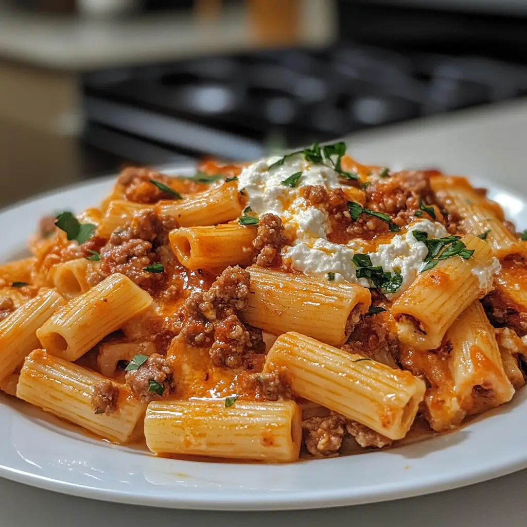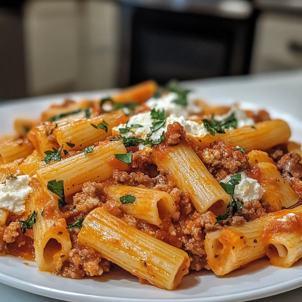 Baked Ziti with Sausage and Ricotta is a hearty and comforting dish that combines pasta, savory sausage, creamy ricotta, and rich marinara sauce, baked to perfection.