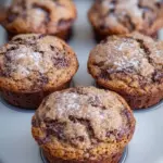 These delightful treats effortlessly combine comfort and decadence, making them the ultimate baked good for any occasion. Whether you enjoy them warm from the oven with a smear of butter, or as a sweet afternoon snack alongside your favorite beverage, they never fail to bring a smile to your face. Each muffin showcases the perfect harmony of flavors and textures: the creamy softness of the banana contrasts beautifully with the slight crunch of the muffin top, while pockets of gooey chocolate provide pockets of joy in every bite. They are not just muffins—they are a heartfelt hug, a memory of childhood, and an easy way to brighten up your day.