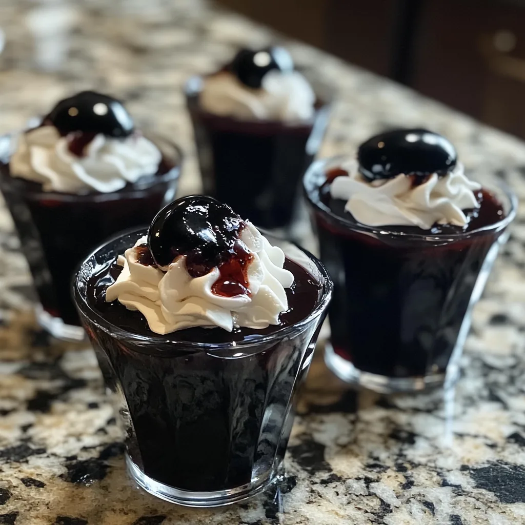 Among the many themed variations, Black Magic Jello Shots stand out as the perfect Halloween-inspired creation. Their jet-black appearance immediately sets the mood for mystery and enchantment, while their sweet and tangy cherry-grape flavor laced with vodka makes them just as delicious as they are eye-catching. Served in shot cups, layered on spooky trays, or topped with whipped cream and glitter, these jello shots are a statement piece as much as they are a drink.