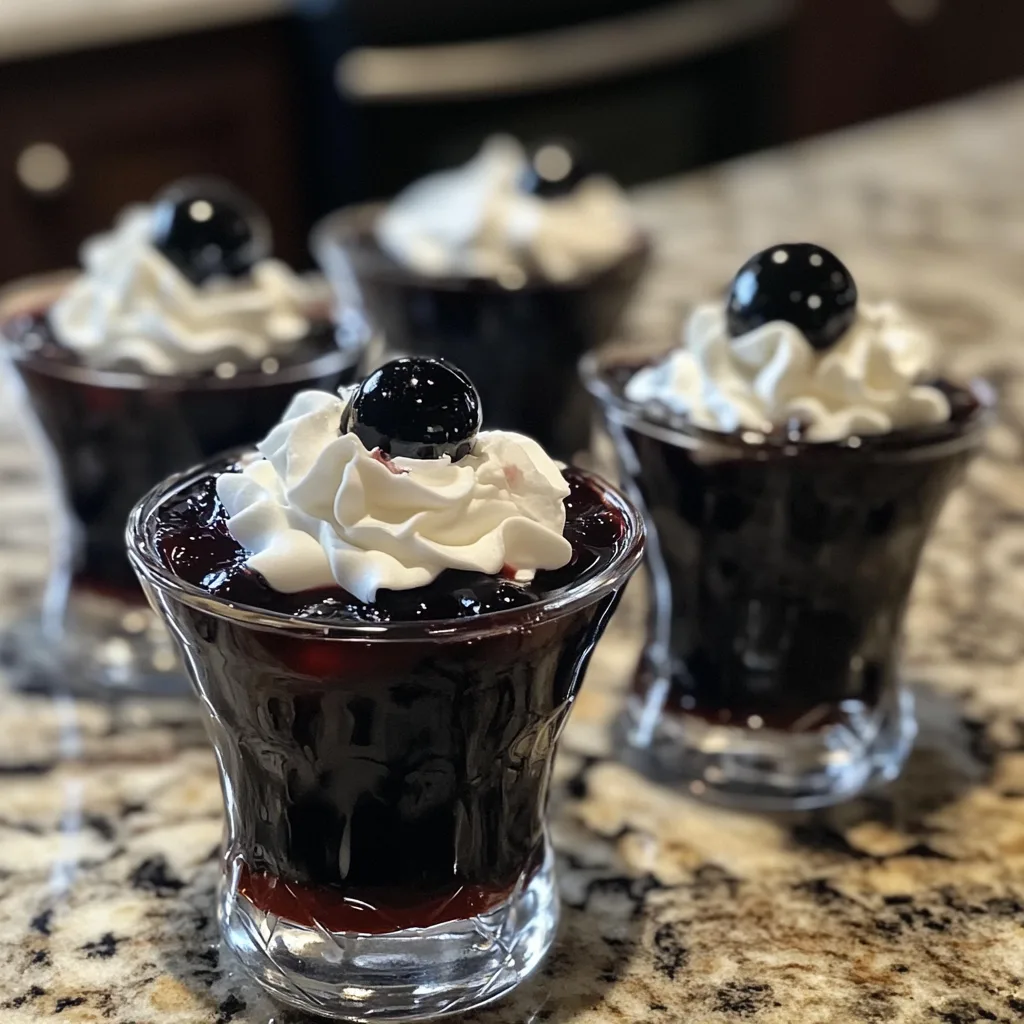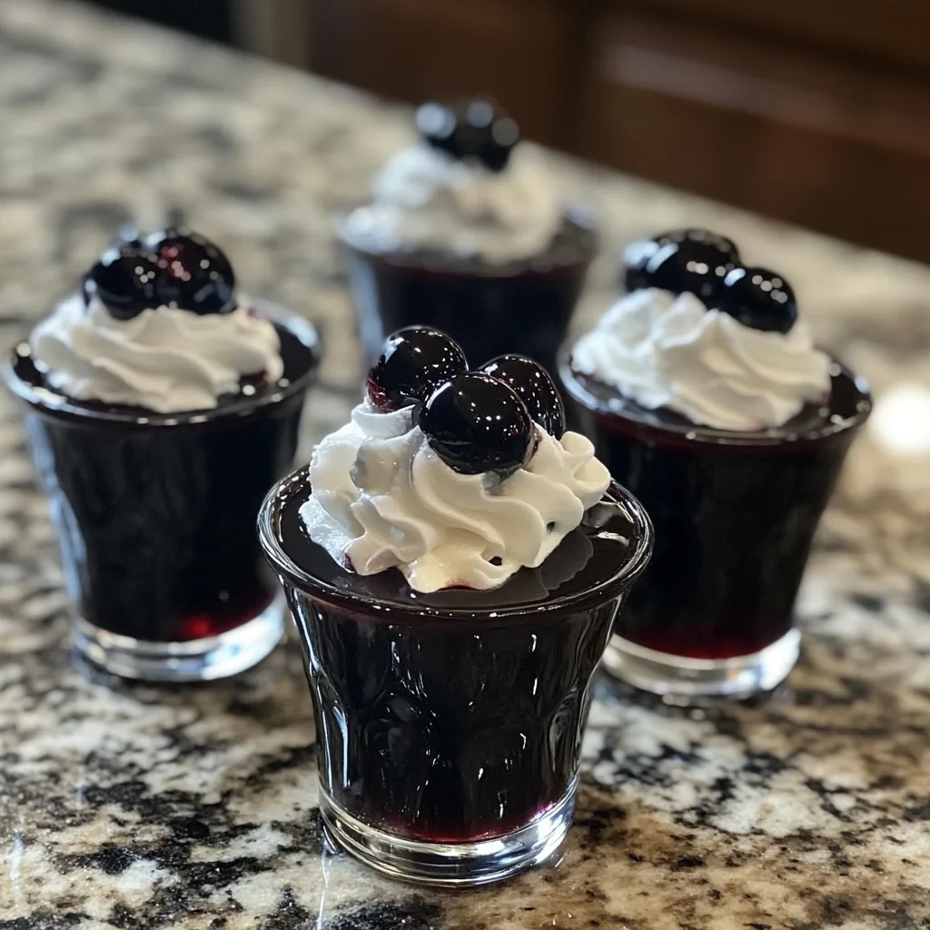 The deep, almost-black color makes these jello shots a centerpiece item. Guests won’t just eat them—they’ll talk about them, snap photos, and remember them long after the party ends. -