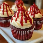 Keywords: Bloody Red Velvet Cupcakes, Halloween cupcakes, spooky treats, red velvet recipe