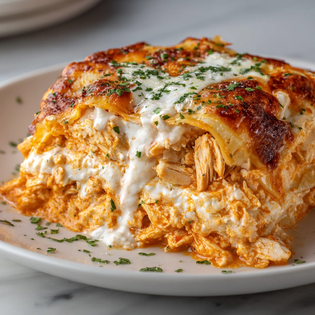 Keywords: Buffalo Chicken Lasagna, spicy lasagna, creamy lasagna, buffalo chicken recipe, comfort food, easy lasagna, cheesy lasagna, American cuisine, baked pasta, party food, crowd-pleaser, weeknight dinner, comfort dish, spicy comfort food