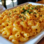 Carefully transfer the macaroni and cheese mixture into a greased baking dish. If you’re using breadcrumbs, sprinkle them evenly on top for that delightful crunch. This step adds a lovely texture contrast to the creamy dish.