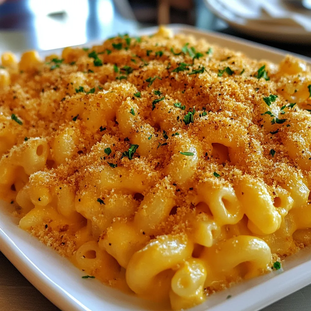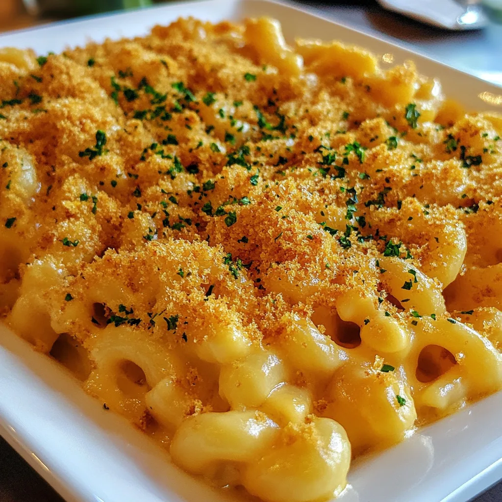 Carefully transfer the macaroni and cheese mixture into a greased baking dish. If you’re using breadcrumbs, sprinkle them evenly on top for that delightful crunch. This step adds a lovely texture contrast to the creamy dish.