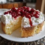 Keywords: Cherry Angel Cloud Cake, angel food cake, cherry dessert, light cake, summer dessert, fluffy cake, whipped cream, cherry topping, easy cake recipe, gluten-free dessert, fruit dessert, homemade cake, festive dessert, light and airy cake