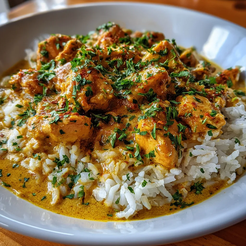 A delicious and unique dish that combines tender chicken with sweet apples and aromatic spices, creating a flavorful curry bowl.