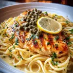 A delightful Chicken Piccata Pasta with tender chicken, al dente pasta, and a zesty lemon caper sauce.