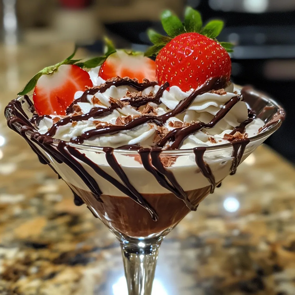 A delightful cocktail that combines the rich flavors of chocolate and fresh strawberries, perfect for special occasions or a sweet treat.