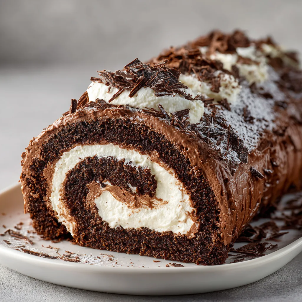 Finally, place your rolled cake seam-side down on a serving platter. Decorate with chocolate shavings for that festive touch. Slice it up, and watch your loved ones’ faces light up with joy as they enjoy this delightful Chocolate Yule Log Cake!