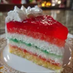 Keywords: Christmas Jello Cake, festive dessert, holiday cake, jello dessert, colorful cake, layered cake, easy dessert, party cake, Christmas recipes, jello layers, whipped cream frosting, holiday baking, dessert ideas, seasonal treats