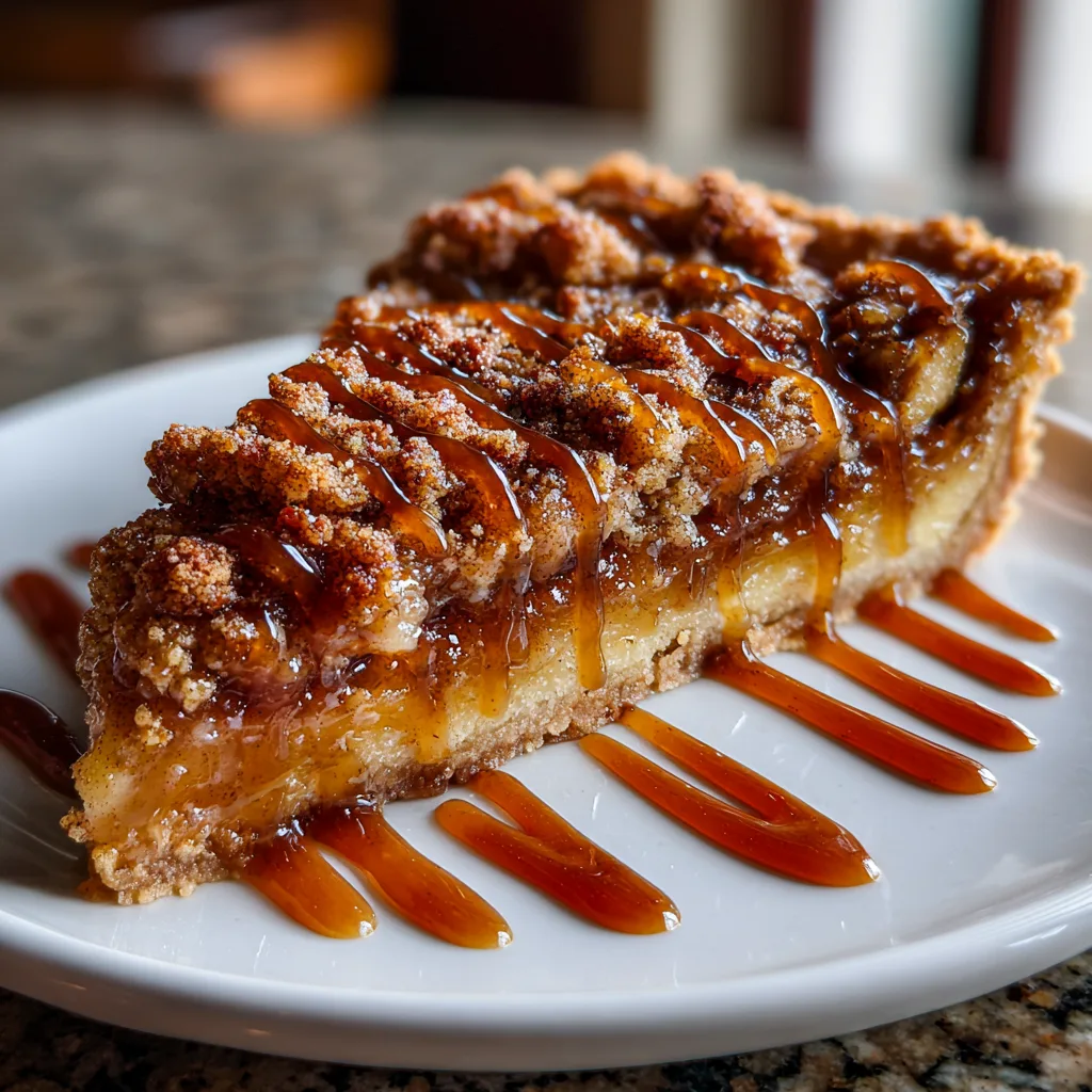 A delightful dessert featuring a buttery tart crust filled with spiced apples and topped with a crunchy streusel.