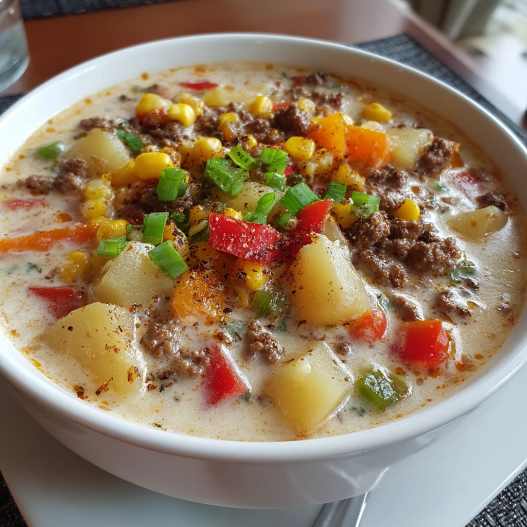Imagine a chilly evening, the kind that calls for a warm embrace from a bowl of soup. As you lift a spoonful of Creamy Cowboy Soup to your lips, the rich, velvety broth envelops your senses. The aroma of sautéed onions and bell peppers mingles with the hearty scent of beef, while the vibrant colors of fresh vegetables dance in the pot. Each bite reveals tender chunks of beef, perfectly balanced with creamy potatoes and sweet corn, creating a symphony of flavors that warms your soul. This soup is not just a meal; it’s a comforting hug on a cold day, perfect for family gatherings, cozy nights in, or even a casual dinner with friends. Let’s dive into this delightful recipe that promises to become a staple in your kitchen.