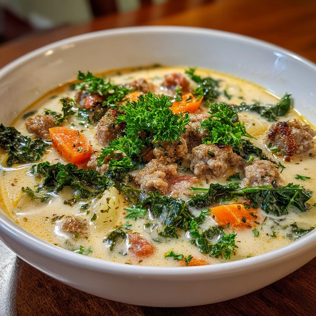 Keywords: Creamy Italian Sausage Soup, Italian soup, hearty soup, comfort food, creamy soup, sausage soup, kale soup, easy soup recipe, one-pot meal, winter soup, savory soup, homemade soup, quick dinner, family meal, Italian cuisine