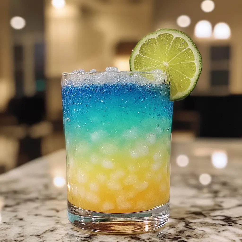 Garnish: lime wheel + edible glitter (optional) – Enhances the visual appeal, transforming the drink into a sparkling lagoon.