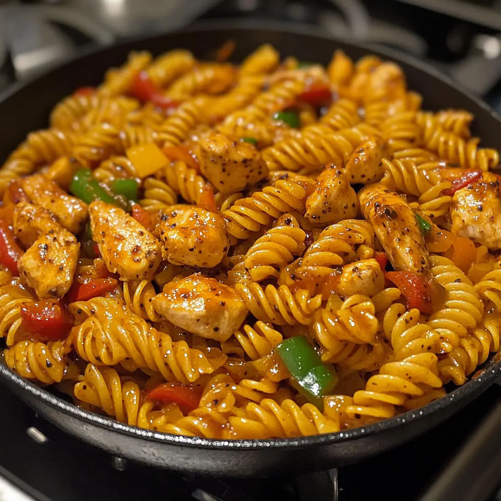 A quick and delicious pasta dish featuring tender chicken, a sweet and spicy honey pepper sauce, perfect for a weeknight dinner.