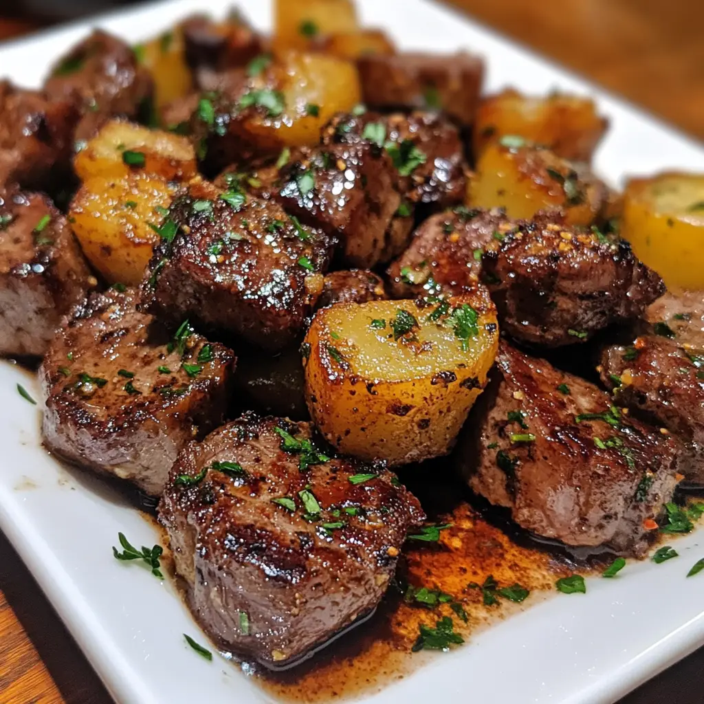 Garlic Butter Steak Bites with Potatoes is a delicious and easy-to-make dish that combines tender steak bites with crispy potatoes, all coated in a rich garlic butter sauce.