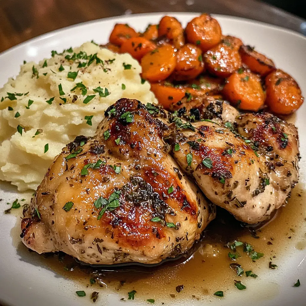 Keywords: Garlic Herb Chicken, Mashed Potatoes, Glazed Carrots, Chicken Recipe