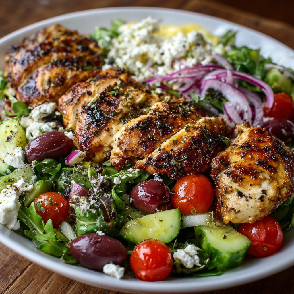 This Grilled Mediterranean Chicken Salad is a vibrant medley of juicy grilled chicken, crisp greens, and tangy feta cheese, all drizzled with a zesty lemon-oregano dressing. Each bite offers a delightful crunch from fresh vegetables and a burst of flavor that transports you to the sun-soaked shores of the Mediterranean.