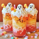This punch combines fruity flavors with a creamy texture, bubbly soda, and whimsical toppings like marshmallow bunnies or ghost-shaped Peeps. With its pastel orange-pink hue, fizzy personality, and optional spooky garnishes, it’s the ultimate drink to liven up any party—whether you’re hosting a family-friendly bash, a school classroom treat day, or a lighthearted adults’ gathering.