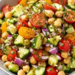 Moreover, chickpeas brim with protein and fiber, transforming this salad into a nourishing power-packed meal. The blend of fresh ingredients allows you to play with the flavors to suit your taste, creating a versatile dish that can adapt to your preferences or what you have on hand. With its colorful presentation, this salad is a feast for the eyes and a staple that you’ll want to share with friends and family time and again.