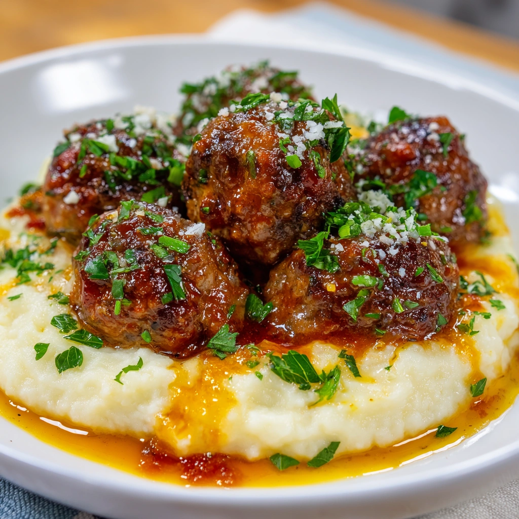 And there you have it! A plate of juicy meatballs paired with velvety garlic mashed potatoes that will make your heart sing. I can almost hear the family gathering around the table, ready to dig in!