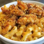 A creamy and flavorful dish combining honey pepper chicken with rich mac and cheese.