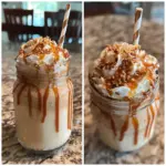 Now for the fun part—toppings! Generously top your milkshake with whipped cream. Then, drizzle some extra caramel sauce on top for that sweet touch. If you’re feeling adventurous, sprinkle some crushed toffee bits or add more caramel drizzle for a delightful crunch. Trust me, it’s worth it!