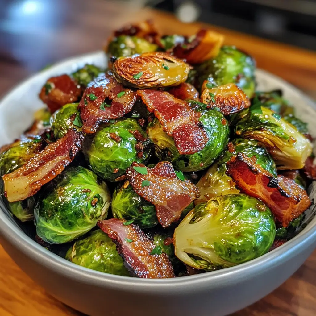 A delicious side dish featuring roasted Brussels sprouts tossed with crispy bacon and a sweet maple glaze.