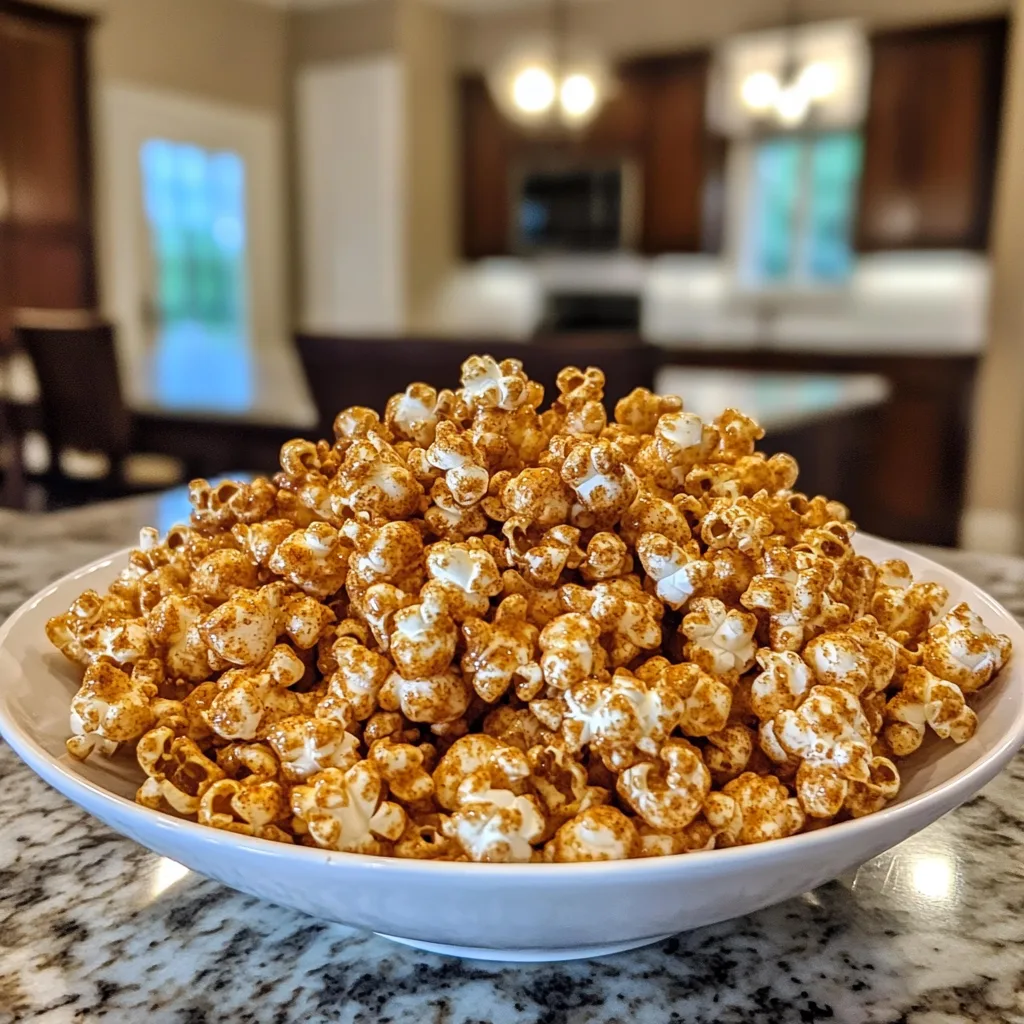 A delightful blend of popcorn, maple syrup, and cinnamon, perfect for a sweet snack.