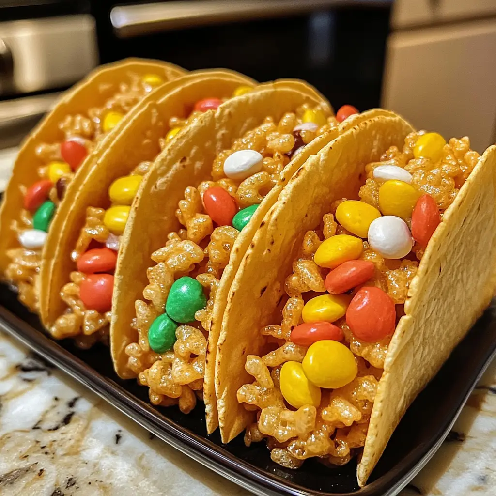 Creating Mini Rice Krispies Tacos with Candy Fillings is more than just a fun recipe; it’s a joyful experience that brings families together. Watching my kids’ eyes light up as they fill their tacos with colorful candies is priceless. These delightful treats are perfect for any occasion, from birthday parties to cozy family nights. Plus, they’re a fantastic way to unleash creativity in the kitchen. So, gather your loved ones, roll up your sleeves, and dive into this sweet adventure. Trust me, the smiles and laughter will be worth every sticky moment!