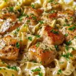 In a world where culinary delights beckon us, few dishes paint a more comforting picture than the One-Pan Creamy Garlic Butter Chicken with Egg Noodles. Imagine golden-brown chicken pieces, seared to perfection, their juices mingling with the sumptuousness of a garlicky, creamy sauce. As you set the table, the inviting aroma wafts through the air, drawing everyone closer with anticipation. The egg noodles sit nestled, absorbing every drop of that rich, velvety sauce, waiting to embrace your taste buds in a dance of savory delight. With each forkful, you experience a symphony of flavors—tender chicken, aromatic garlic, and the luscious creaminess that makes each bite feel like a warm hug.