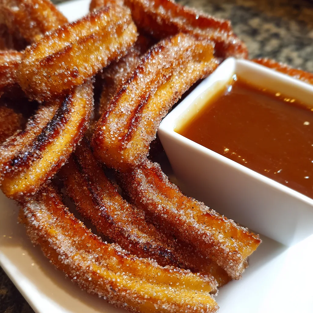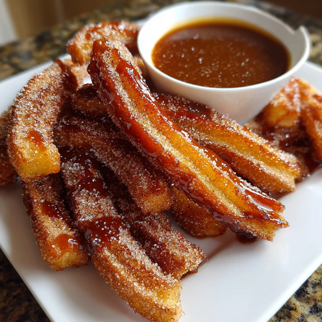 While the churros are still warm, roll them in sugar to coat. This adds a delightful sweetness and crunch. Serve them immediately with a generous drizzle of caramel sauce for dipping. Trust me, the combination of warm churros and rich caramel is pure bliss!