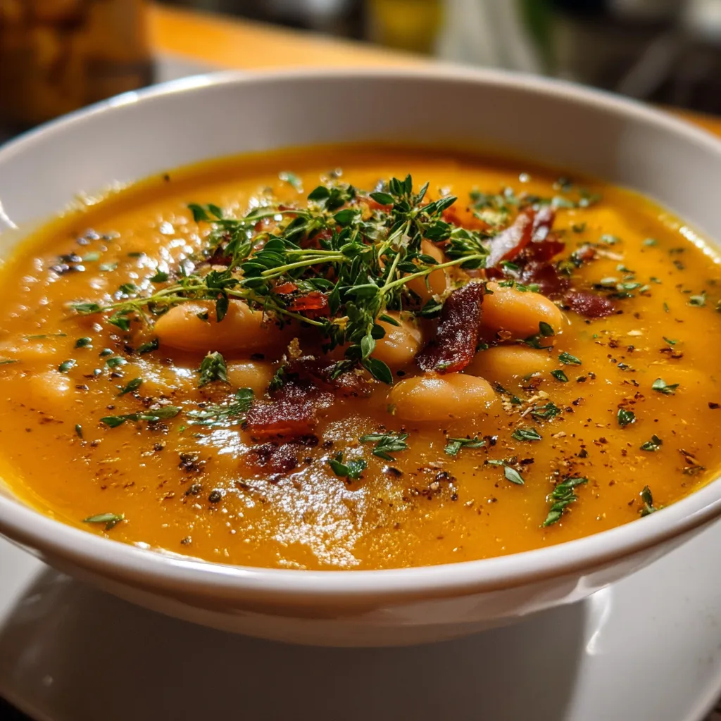 A warm and comforting soup made with pumpkin and white beans, perfect for fall.