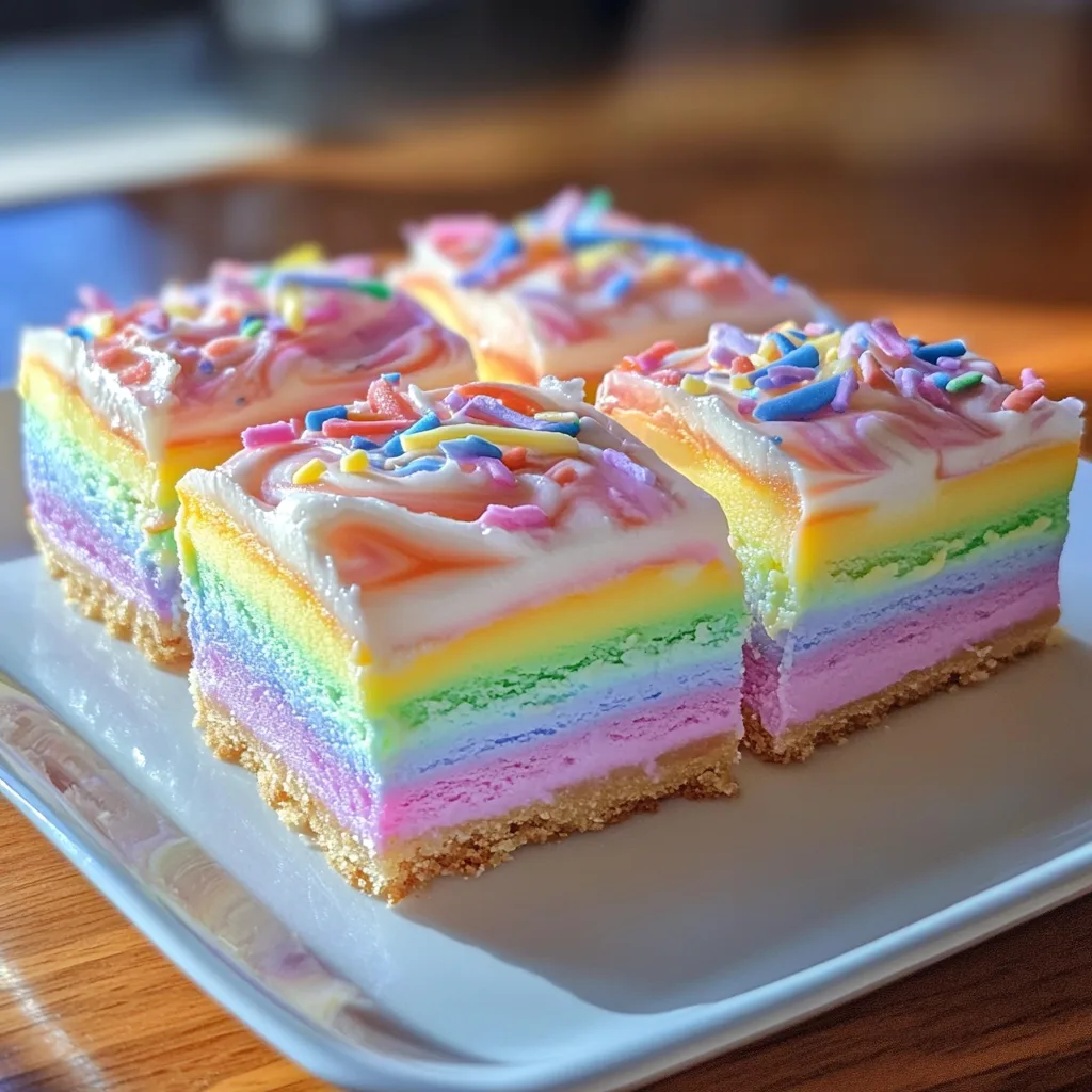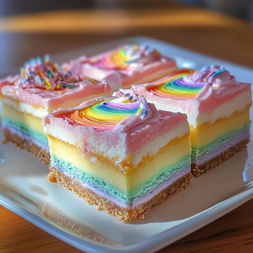 Rainbow Layered Cheesecake Bars are a vibrant and delicious dessert that combines creamy cheesecake with colorful layers, perfect for any celebration.