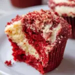 Deliciously fluffy red velvet muffins with a creamy cheesecake swirl, perfect for any occasion.