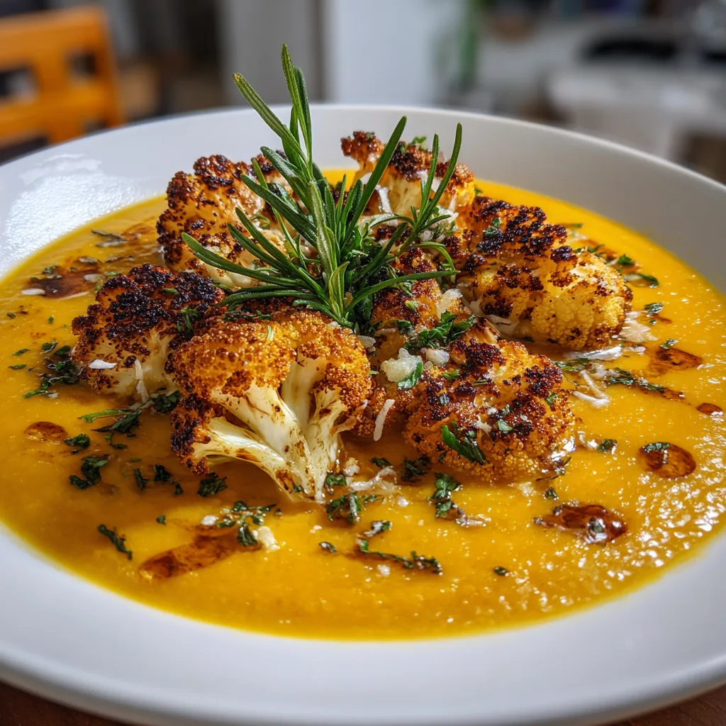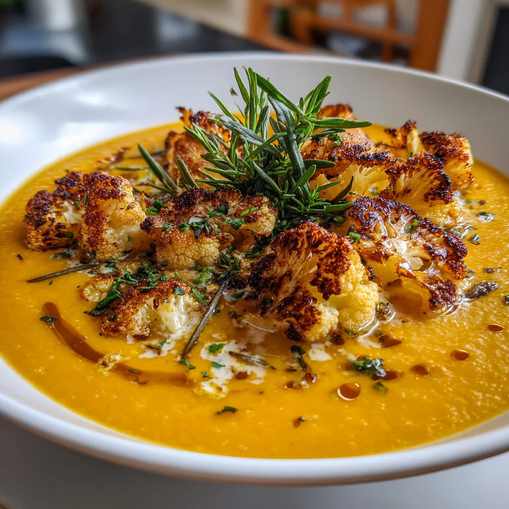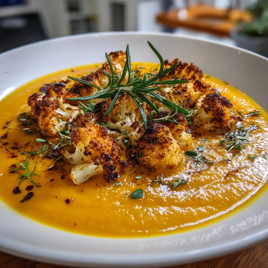 A warm and comforting soup made with roasted cauliflower and pumpkin, perfect for chilly days.