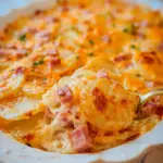 Hearty and comforting scalloped potatoes layered with ham and gooey cheese, perfect for any gathering.