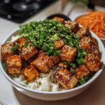 It’s time to bring it all together! Serve the crispy tofu over a bed of cooked rice or quinoa. Top it with the sautéed vegetables, chopped green onions, and a sprinkle of sesame seeds. Your Sesame Ginger Tofu Bowls are now ready to wow your taste buds!