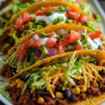 Imagine crispy tortillas cradling a sumptuous filling of seasoned meat and fresh vegetables, all baked to perfection. The pleasing crunch of the tortillas melds beautifully with the rich, flavorful stuffing, casting a spell that makes these tacos irresistible. The gooey cheese melts luxuriously on top, adding warmth and creaminess that beckons you closer. And don’t forget the toppings! A crisp, refreshing sprinkling of lettuce, diced tomatoes, creamy avocado slices, and zesty salsa elevate each bite. These tacos are not merely food—they are a celebration that turns an ordinary evening into an extraordinary experience.
