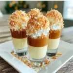 Finally, let’s make these shots look as good as they taste! Top each shot with a generous dollop of whipped cream. Then, sprinkle shredded coconut on top for that extra flair. It’s like a little snow cap on your tropical treat! Serve immediately and watch everyone’s faces light up with joy.