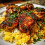 Imagine stepping into your kitchen, where the air is filled with the intoxicating aroma of Spicy Maple Chicken & Coconut Rice. The scent of caramelized chicken thighs, glistening with a sweet and spicy glaze, dances around you, inviting you to take a bite. As you plate the dish, the creamy, fragrant coconut rice sits beneath the succulent chicken, creating a visual feast that is as delightful to the eyes as it is to the palate.