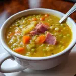 Why is this split pea soup the ultimate go-to for every occasion? First, it’s the delightful exploration of taste—it marries the sweetness of carrots with the smokiness of ham and the earthiness of split peas, creating a robust and inviting flavor profile. The texture combines the creaminess of cooked peas with the tender crunch of diced vegetables, ensuring each bite is satisfying and fulfilling.