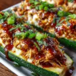 Delicious and easy-to-make zucchini boats filled with BBQ chicken and topped with melted cheese, perfect for a comforting family meal.