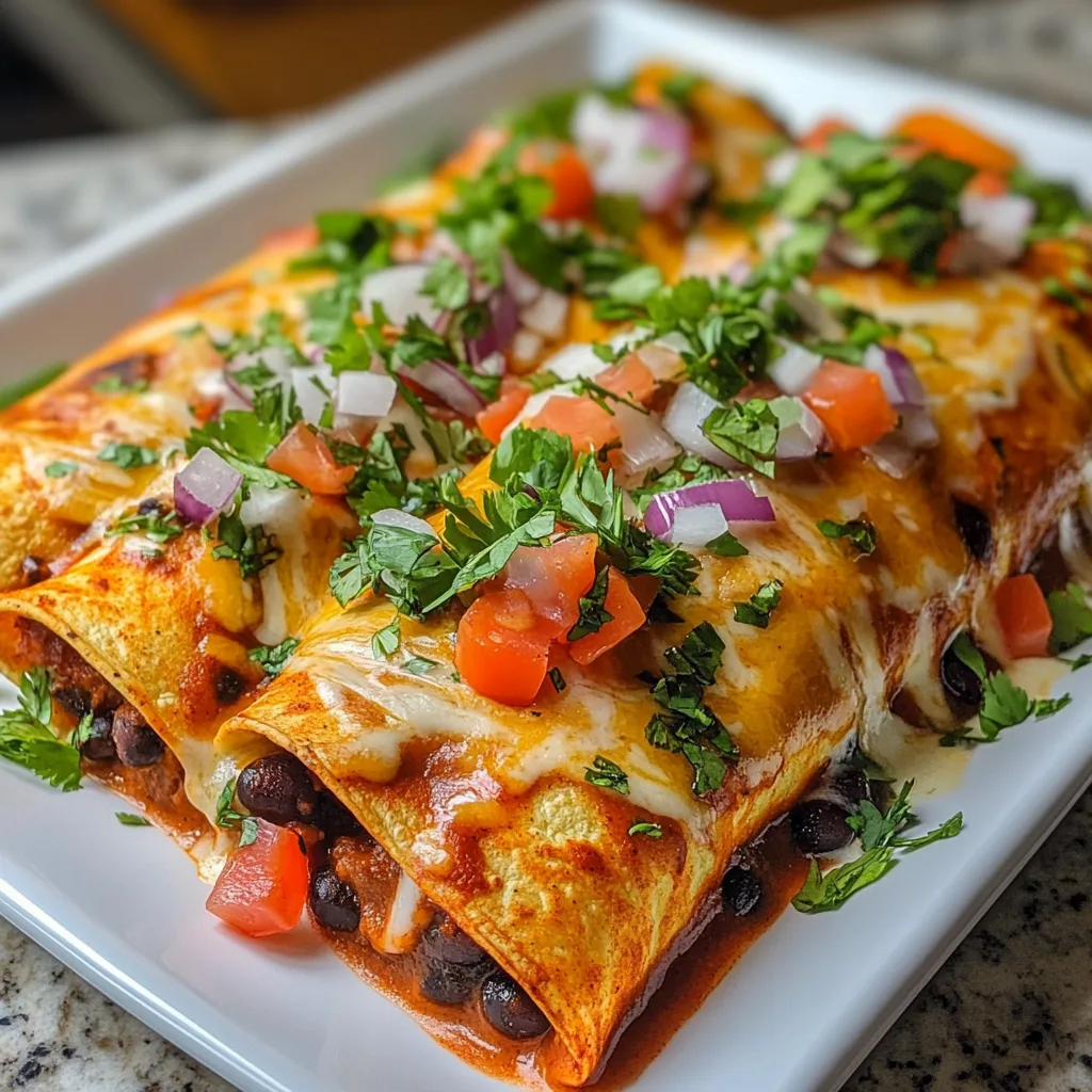 These Sweet Potato & Black Bean Enchiladas are a game-changer for busy nights. They come together in just 45 minutes, making them perfect for a quick weeknight dinner. The combination of sweet potatoes and black beans creates a delightful flavor explosion that even picky eaters will love. Plus, they’re vegetarian and packed with nutrients, so you can feel good about serving them to your family. What’s not to love?