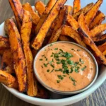 Sweet Potato Fries with Chipotle Dip is a delicious and healthy snack that combines the natural sweetness of sweet potatoes with a spicy and creamy chipotle dip.