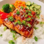 Assemble the bowls: In serving bowls, place a generous scoop of jasmine rice. Top with the glazed salmon and an artful arrangement of stir-fried vegetables. Finish with sprinkles of green onions and sesame seeds for that final flourish.