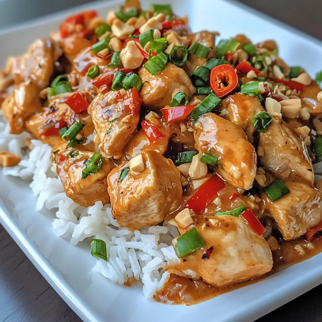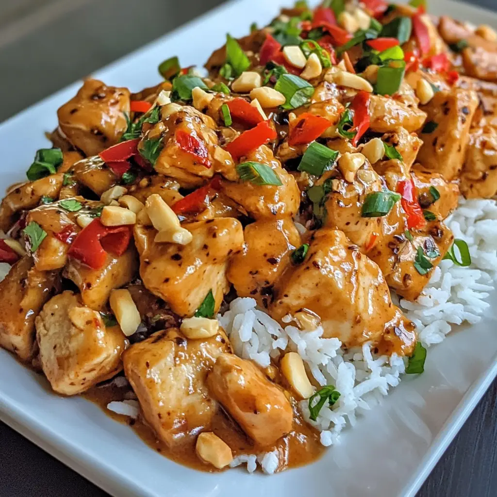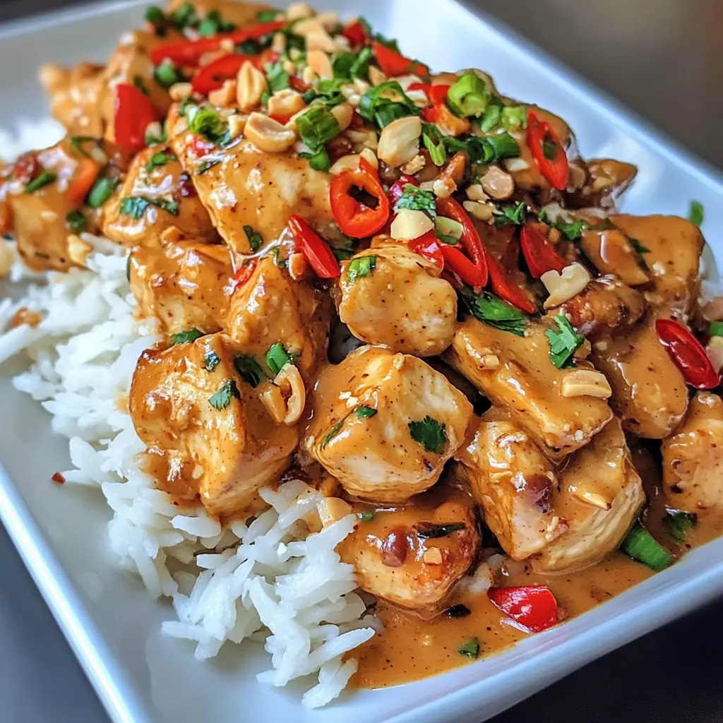 A delicious and flavorful dish featuring chicken, vegetables, and a creamy peanut sauce, perfect for a satisfying dinner.